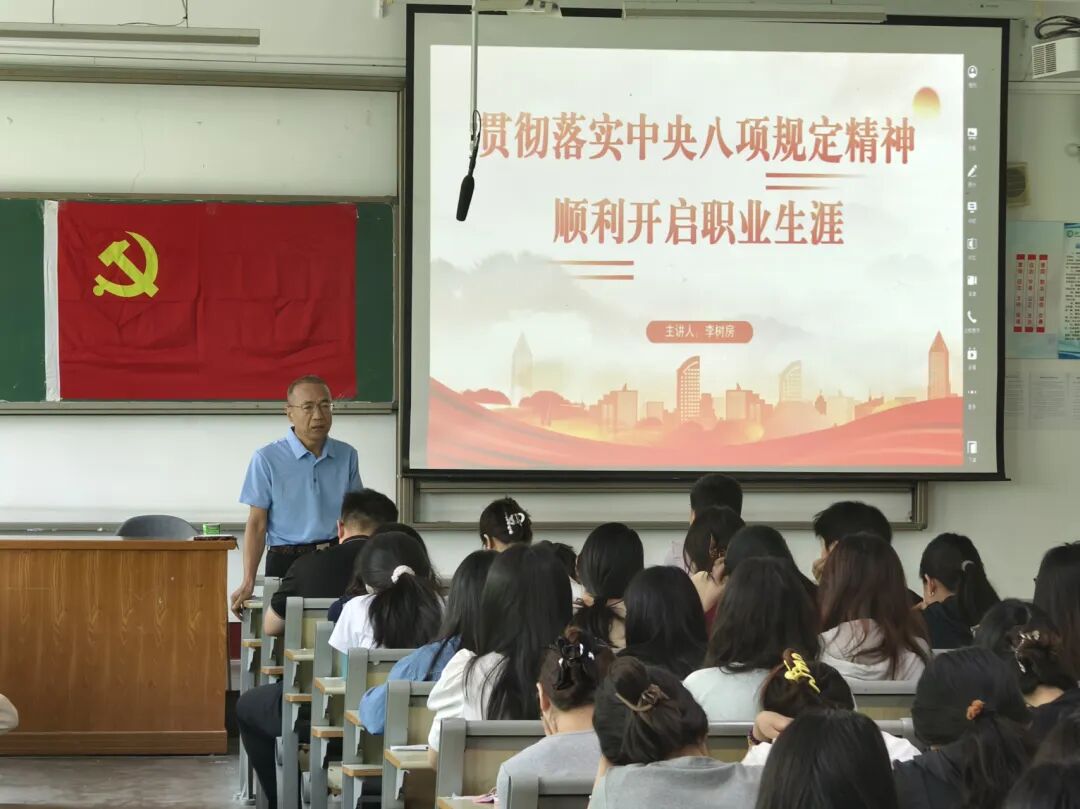 6月15日,成人漫画 党委副书记、副院长李树房为学院2025届毕业生党员作了题为《贯彻落实中央八项规定精神 顺利开启职业生涯》的学习教育专题党课。