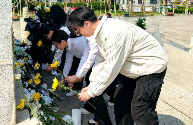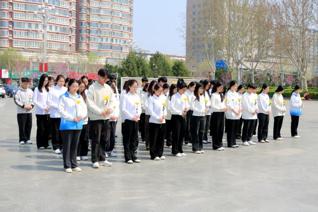 上午十时,两院学子肃立在革命烈士纪念碑前,齐唱《中华人民共和国国歌》,向为民族独立、人民解放而浴血奋战、英勇牺牲的革命烈士默哀并依次献花致敬。