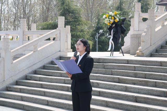 商学院(质量学院)学生会主席团成员甄佳慧代表全体学生发言,结合自身经历深刻阐释青年学子对革命先烈大无畏精神和奉献精神的理解,呼吁新时代广大青年学子铭记历史,勇担青春使命。