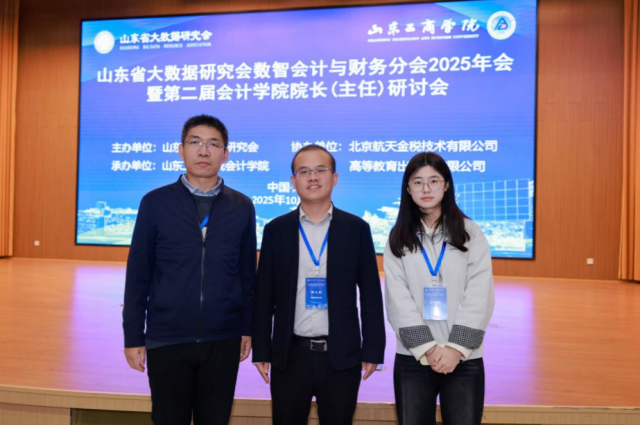 2025年10月18日,山东省大数据研究会数智会计与财务分会2025年会暨第二届会计学院院长(主任)研讨会在烟台市山东工商学院召开,会计系主任张延辉副教授、24级会计专硕研究生王舒畅参加会议。