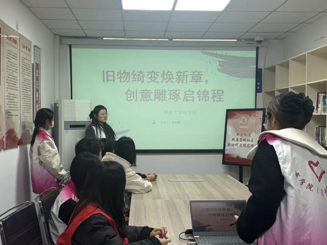 实践环节采用"知识科普+手工课堂"相结合的形式:一方面通过动画短片、趣味问答向居民讲解"变废为宝"的环保价值,解析"减量化、再利用、资源化"原则;另一方面开设创意改造工坊,志愿者利用事先收集的纸箱、报纸等生活旧物,手把手指导居民将其转化为实用家居饰品,让废旧材料在剪刀裁剪与胶枪塑形中焕发新生,将环保理念深深印入居民心中。