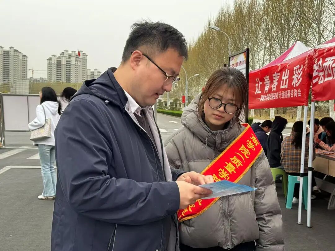 3月27日,成人漫画 于东校区逸夫图书馆南校训石前举办“绘西部新篇,以青春为卷,共‘商’西部未来”2025年大学生志愿服务西部计划招募咨询会,学院辅导员高鹏到场指导。