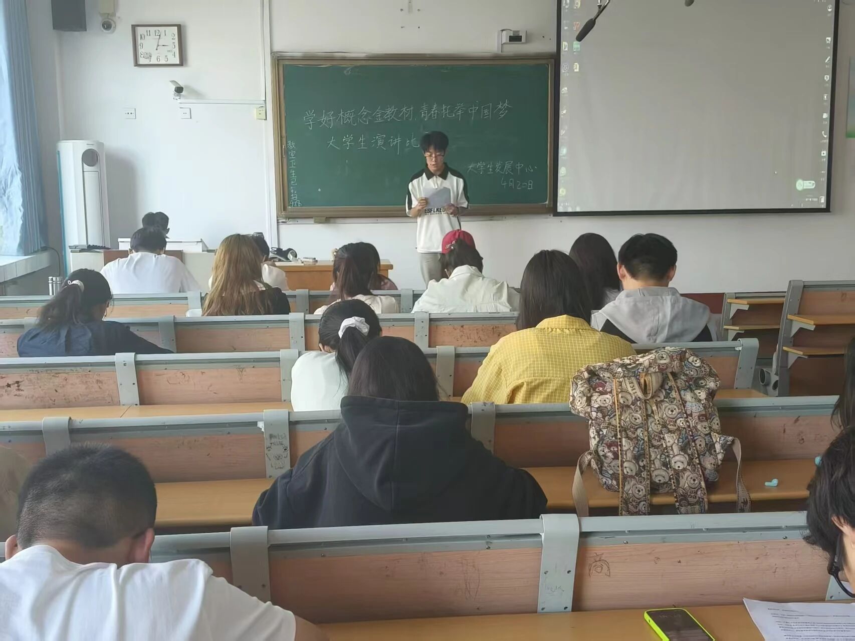 4月20日,成人漫画 于东校区1#305举办“学好概论金教材 青春托举中国梦”演讲比赛,2024级共20名同学参赛。
