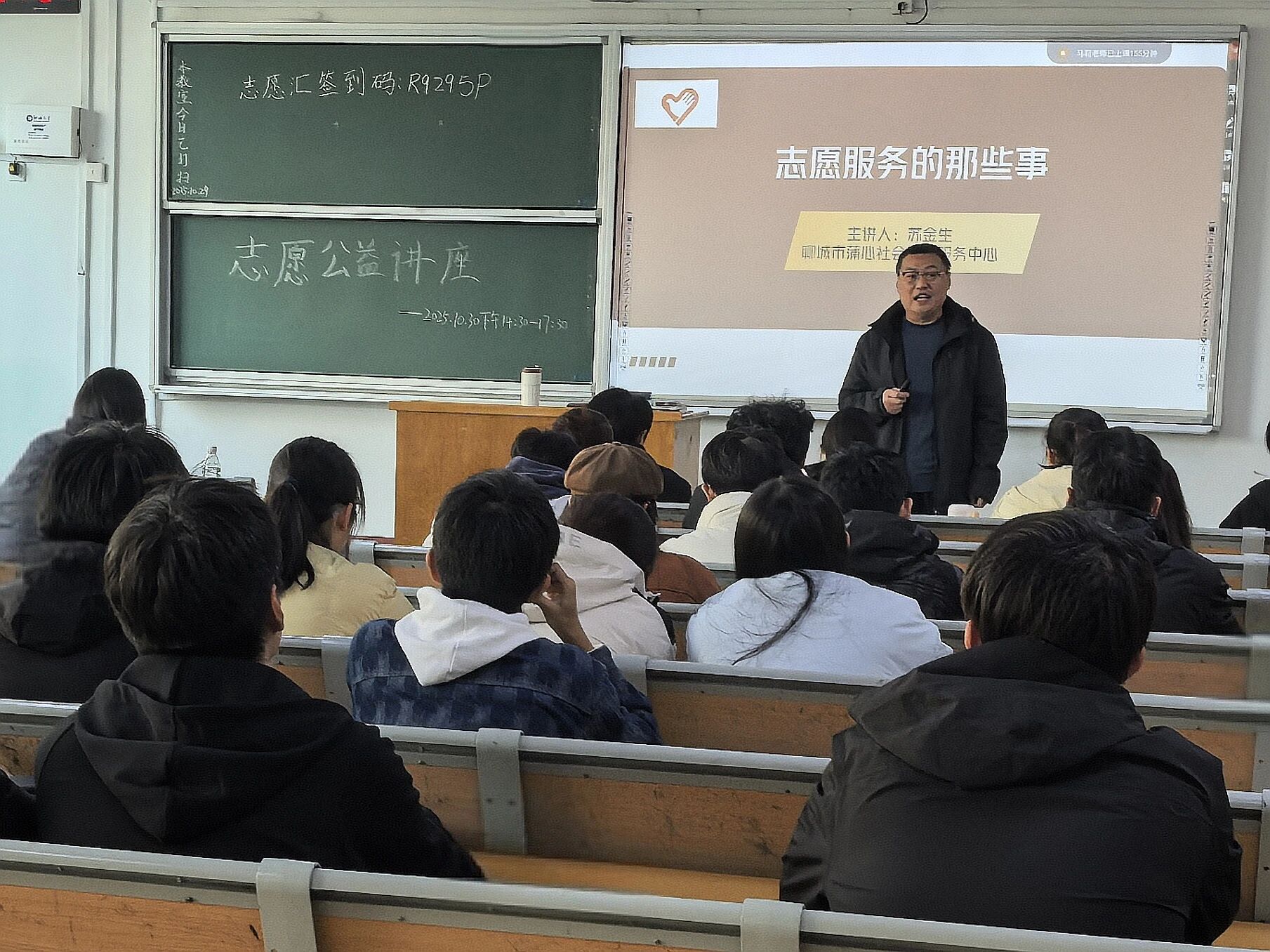 苏金生指出,志愿服务是社会文明进步的重要标志,做好志愿服务工作关乎民生温度、社会治理与公益生态,各组织将会以“领域多元化+服务精准化”为路径,将志愿服务工作纳入社会公益发展战略布局,通过创新形式、整合资源、打造品牌,系统性推进志愿服务高质量可持续开展。同时,他向同学们重点展示了近年来在志愿服务领域多元化、内容精准化、项目品牌化、成效立体化等方面的创新成果,并指出中心会深度激活志愿服务主体效能,构建“需求牵引+精准服务”的志愿行动模式,系统规划志愿服务项目矩阵,打造公益力量集聚高地。