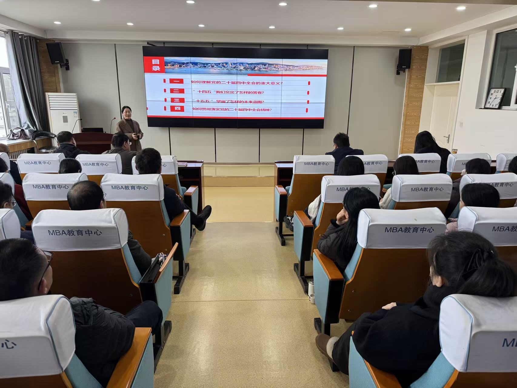 华敏以《新时代新征程的宏伟蓝图与战略指引——党的二十届四中全会精神解读》为题,围绕党的二十届四中全会重大意义、“十四五”时期历史性成就、全会擘画的未来发展蓝图及贯彻落实全会精神的实践路径四个方面展开系统讲解。她结合生动案例与详实数据,深入浅出地阐释了全会精神的核心要义,强调全会为新时代新征程指明了前进方向,号召全体教职工深刻领会精神实质,切实把思想和行动统一到党中央决策部署上来。