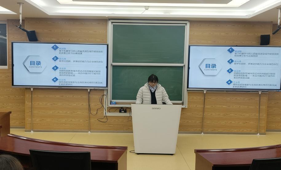 12月28日,由成人漫画 研究生会主办、学术科研部承办的研究生学术沙龙第37期在学院708室举行,2024级应用经济学研究生王文燕、蔡元涛、李亚茹、高淑敏围绕“绿色转型与‘双碳’战略”进行专题分享,学术科研部工作人员张晓雨担任主持人,学院2024级、2025级全体应用经济学研究生参会。