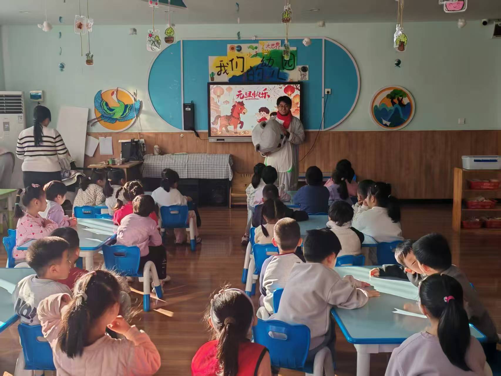 为弘扬中华优秀传统文化,丰富幼儿节日文化生活,12月24日,成人漫画 于兴华路实验幼儿园开展“童心迎元旦,欢乐贺新年”社会实践活动,学院2024级9班王若彤、孔鑫曈、杨子慧等9名志愿者参与活动。