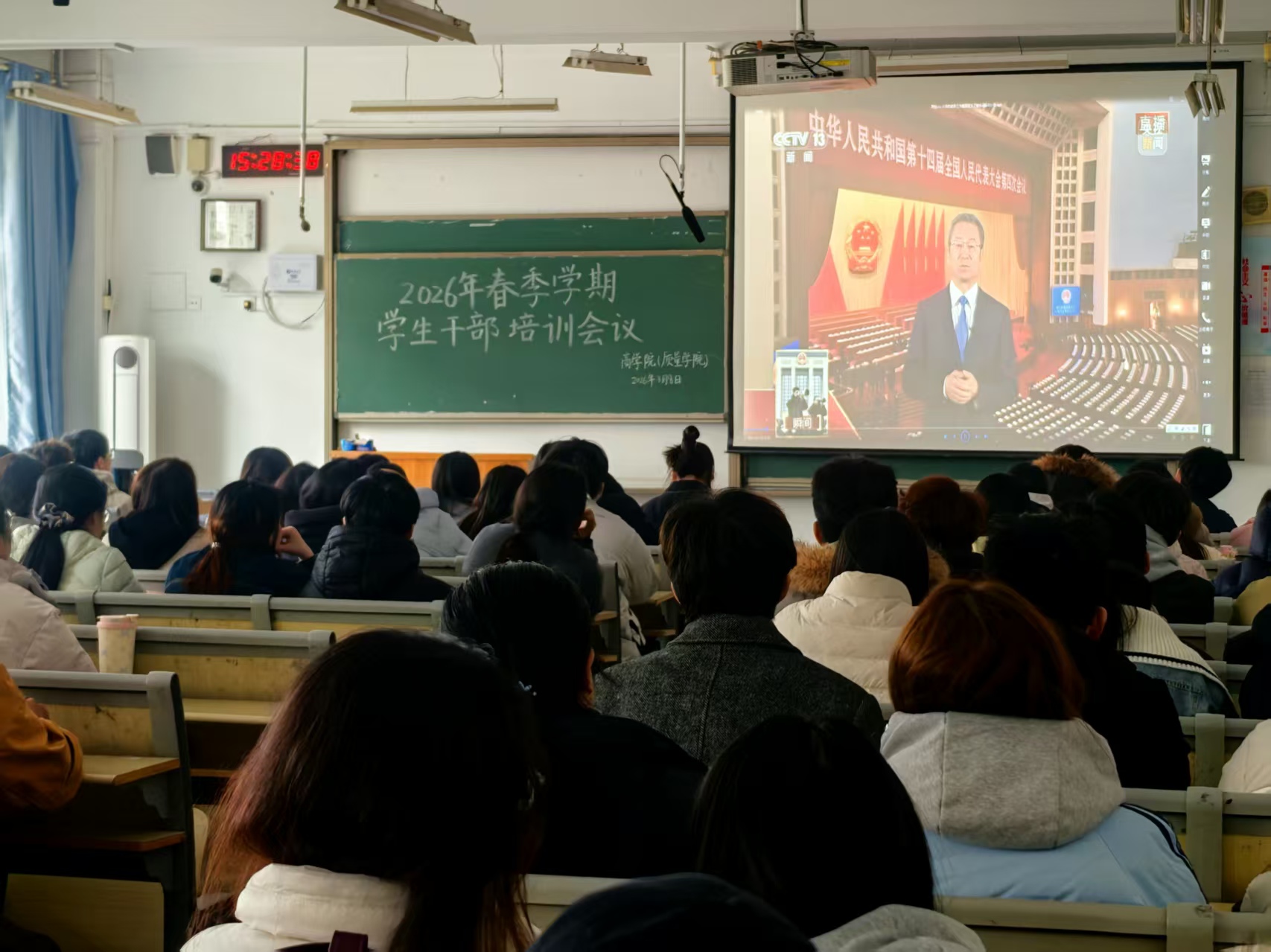 春潮启新程,奋进正当时。2026年全国两会胜利召开,彰显着以人民为中心的发展思想,也为青年前行指明了方向。作为学生干部,我将深学细悟两会精神,坚定理想信念,扛起责任担当,发挥表率作用。今后我会立足本职、脚踏实地,勤学善思提升能力,务实笃行锤炼作风,用心服务同学、主动奉献集体。把个人成长融入时代发展,把青春奋斗融入强国建设,以实干笃定前行,以担当践行使命,在新征程上贡献青春力量。